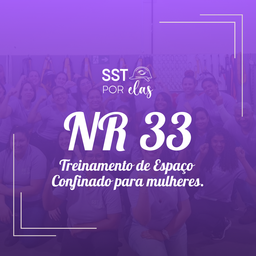 Treinamento de Trabalhador e Vigia – NR 33 para mulheres. Participe por um pequeno investimento e seja um membro do projeto SST por Elas onde um dos nossos objetivos é empoderar instrutoras. Venha se capacitar para com o tempo ganhar proficiência e se tornar uma mestra inesquecível em segurança do trabalho.